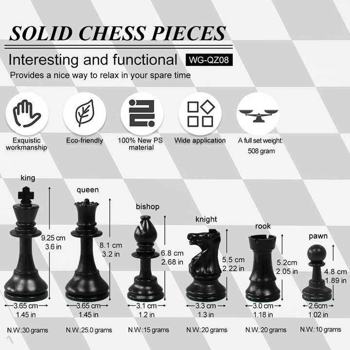 WG-QZ08 Factory wholesale Custom Chess Pieces Sets White Black PS Chess for Chess Board Game